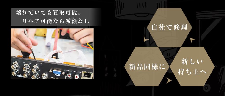 オーディオの買取屋さんは自社に修理工房があるため故障したオーディオの修理が可能です。 そのため、査定時に修理が可能なものであれば減額することなく買取可能なのが特徴!